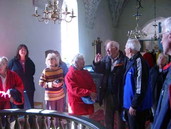 ![]() Nils-Göran berättade på sitt medryckande sätt om kyrkan och dess historia. |