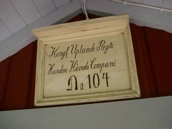 ![]() En kopia av den gamla rotetavlan sitter över dörren (originalet finns på krigsarkivet). |