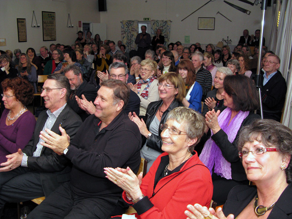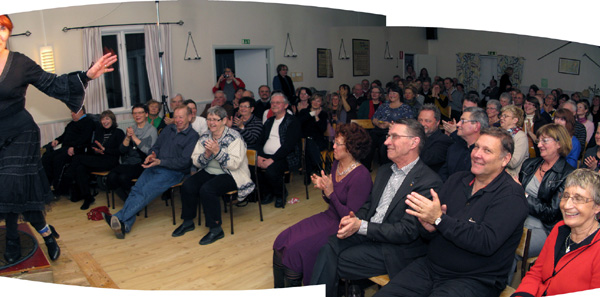 Det var fullsatt i Bygdegården när Kim Anderzons flexibla fruntimmer tog scenen i besittning.